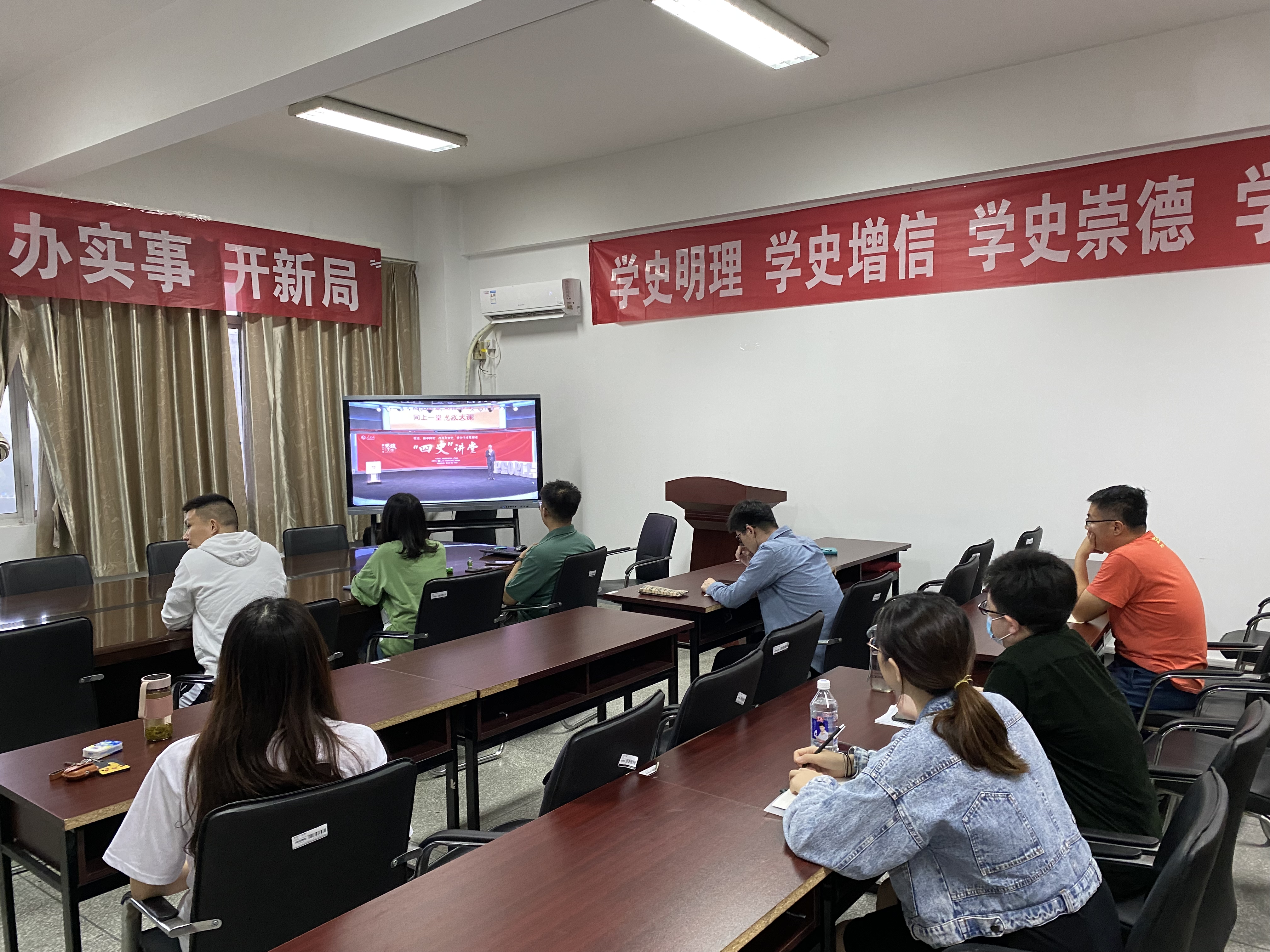 5月15日下午,由教育部社科司将与人民网联合举办的“同上‘四史’思政大课”第三讲“同上改革开放史思政大课”正式开讲,XK星空体育高度重视、统筹安排,积极组织科技史研究生以及江科大理论研习会成员在学院第一会议室共同收看了此次“同上改革开放史思政大课”。