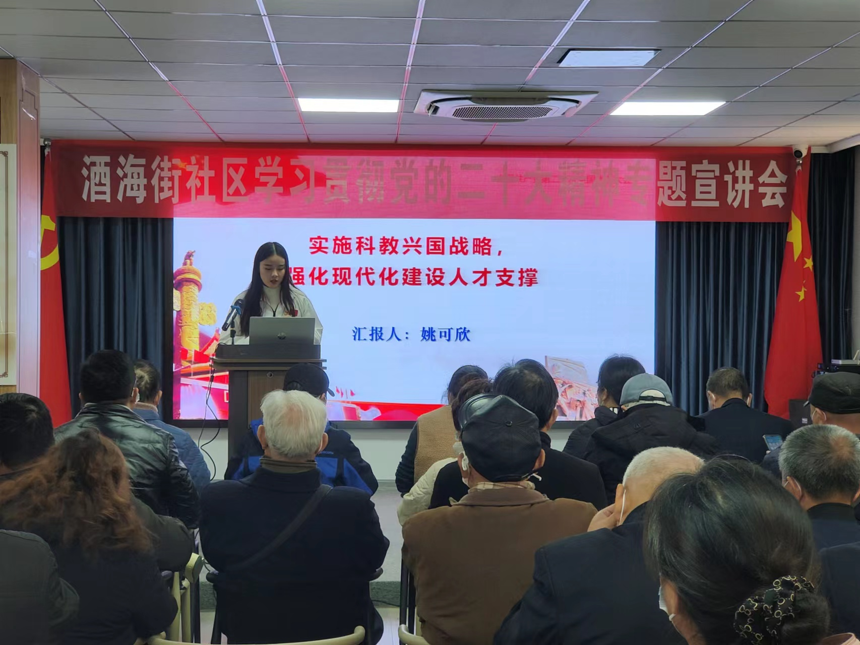 12月3日,星空XKXK星空体育党的二十大精神理论宣讲团走进酒海街社区,开展主题宣讲,宣讲报告分为老师总领学、学生分章学和党员互动学三个环节。
