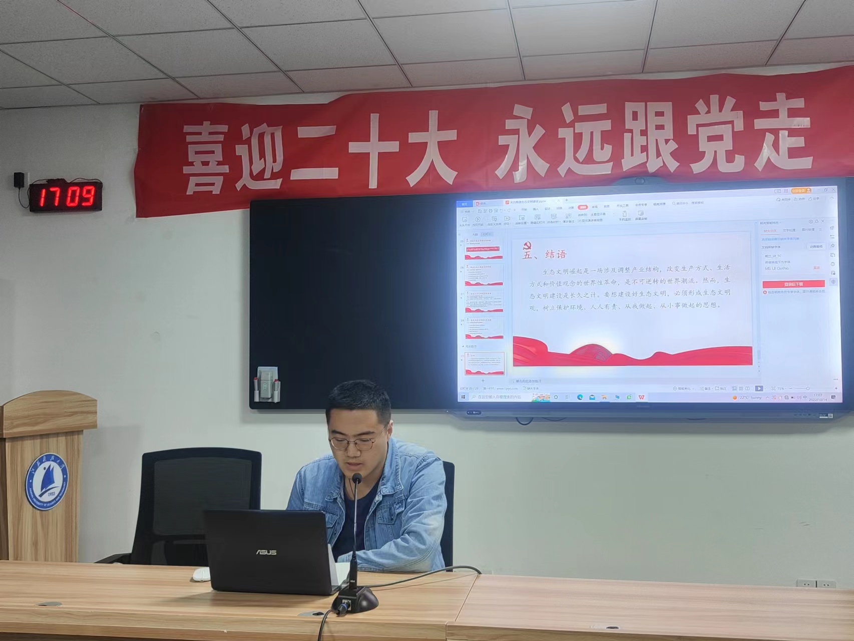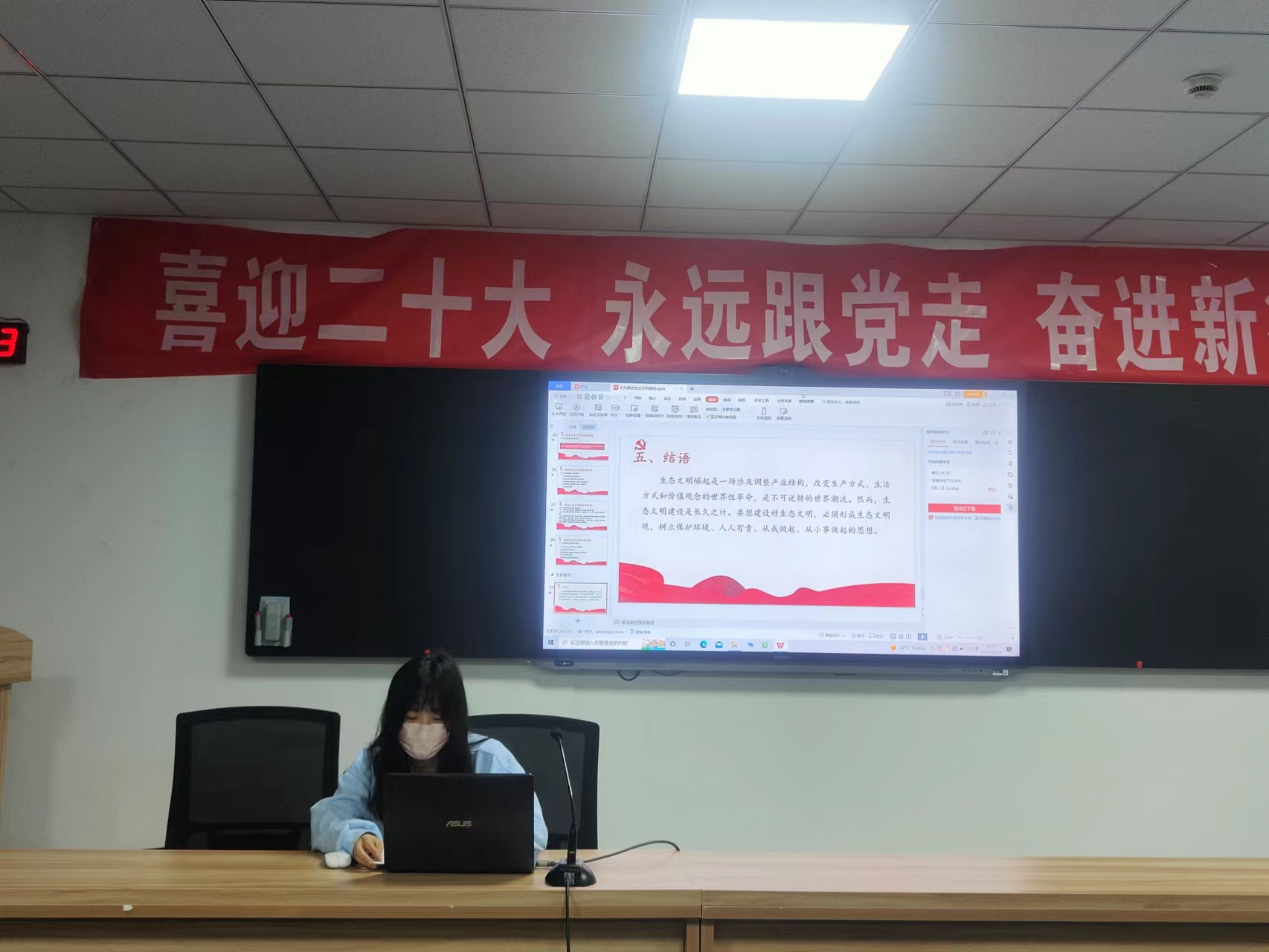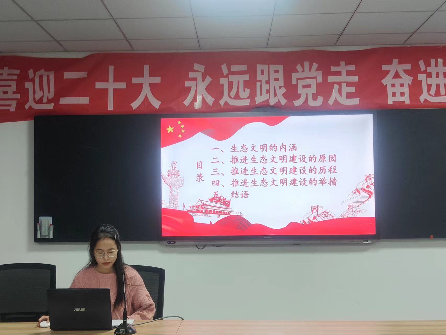 “近年来,土地荒漠化、大气污染、水污染等一系列污染问题层出不穷,给人们的健康带来了危害,给生态文明建设带来了挑战。生态文明建设是长久之计,要想建设好生态文明,必须形成生态文明观,树立起保护环境、人人有责、从我做起、从小事做起的思想。”研一同学汪萍如是说。