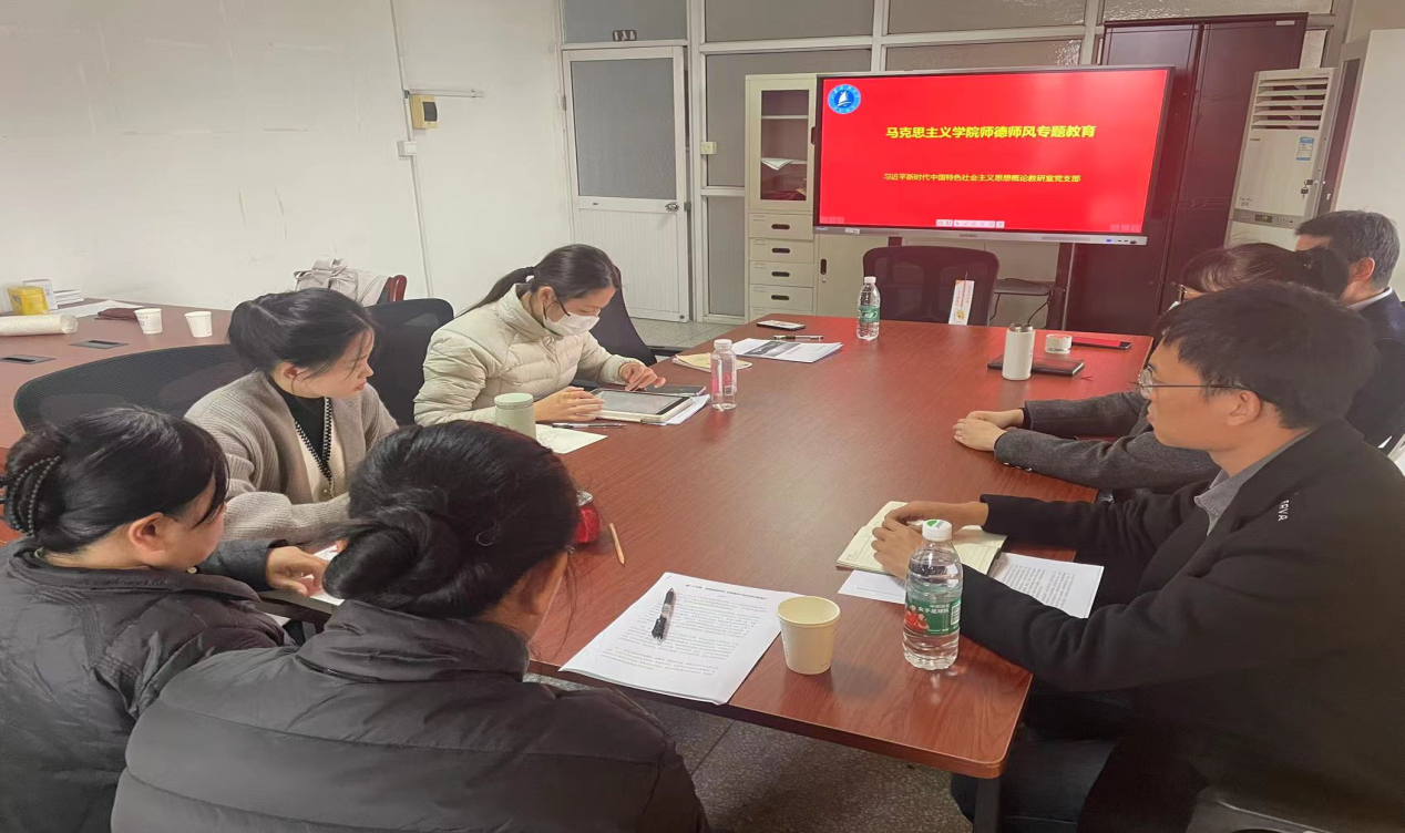 学院老师重点围绕明师德要求、强“四史”教育、学师德楷模、遵师德规范、守师德底线进行了学习教育,一致认为高校思政课教师要坚定理想信念、厚植爱国情怀、涵养高尚师德。