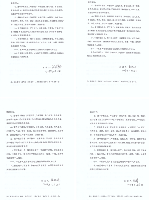 最后,学院组织今年新进教师签署了师德承诺书,各位老师纷纷表示保证做好承诺书上的每一项。