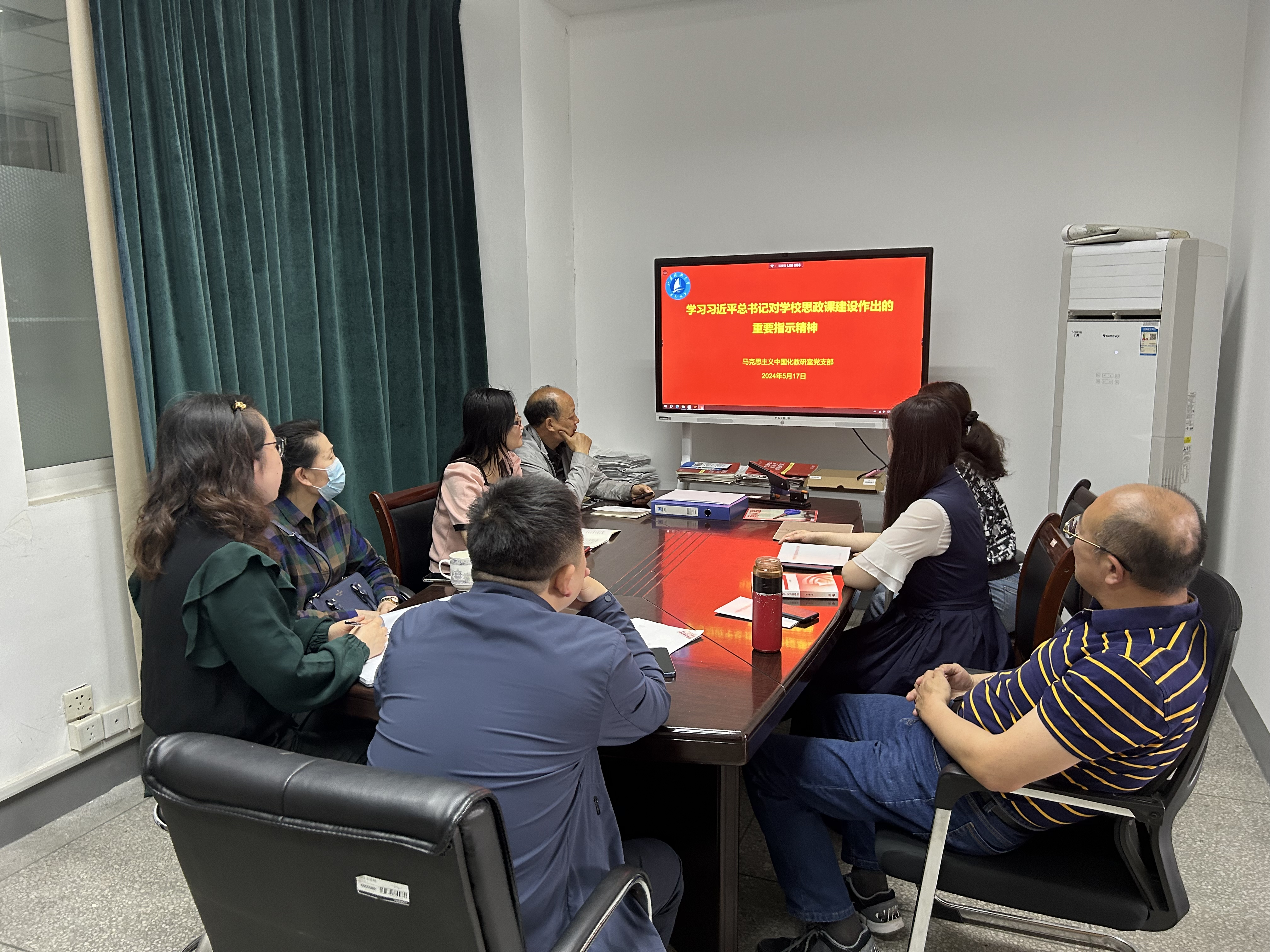 5月17日上午,马克思主义中国化教研室党支部全体教师集中学习了习近平总书记关于学校思政课建设的重要指示精神。围绕落实立德树人根本任务,各位老师深入探讨了教研室如何落实习近平总书记重要指示精神,在思政课教学中如何守正创新,如何加强思政课针对性和吸引力。