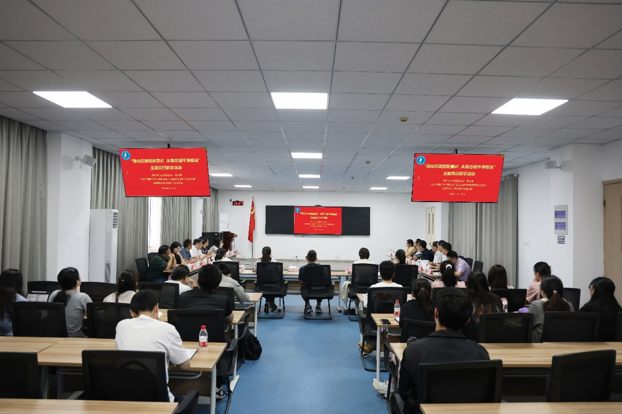 为深入学习习近平总书记关于党纪学习教育的重要讲话和重要指示精神,牢牢把握以伟大自我革命引领伟大社会革命的重要要求,加强校检联学共学,实现经验共享、优势互补、共促发展,推动党纪学习教育走深走实,6月28日,XK星空体育习近平新时代中国特色社会主义思想概论教研室党支部、思想道德与法治教研室党支部与镇江市人民检察院第一党支部开展“强化纪律规矩意识, 永葆忠诚干净担当”主题党日联学活动。校党委副书记汤建,市检察院党组书记、检察长潘昌锋,市检察院党组成员、副检察长汪兴东,XK星空体育院长洪波,党总支书记郭昭昭,副院长阚为以及市检察院相关支部党员参加了此次联学活动。活动由洪波同志主持。